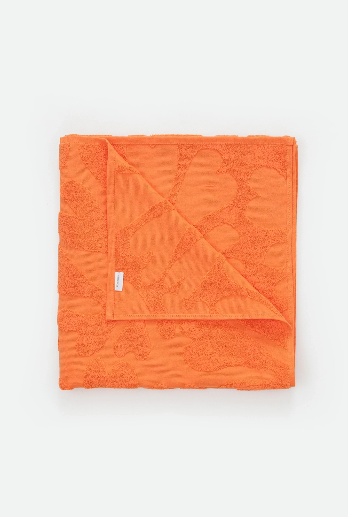 Reljefni floralni dezen daje peškiru dinamičan i moderan izgled, dok intenzivna narandžasta nijansa unosi energiju i lakoću letnjih dana, čineći ga lako uočljivim na plaži ili pored bazena.