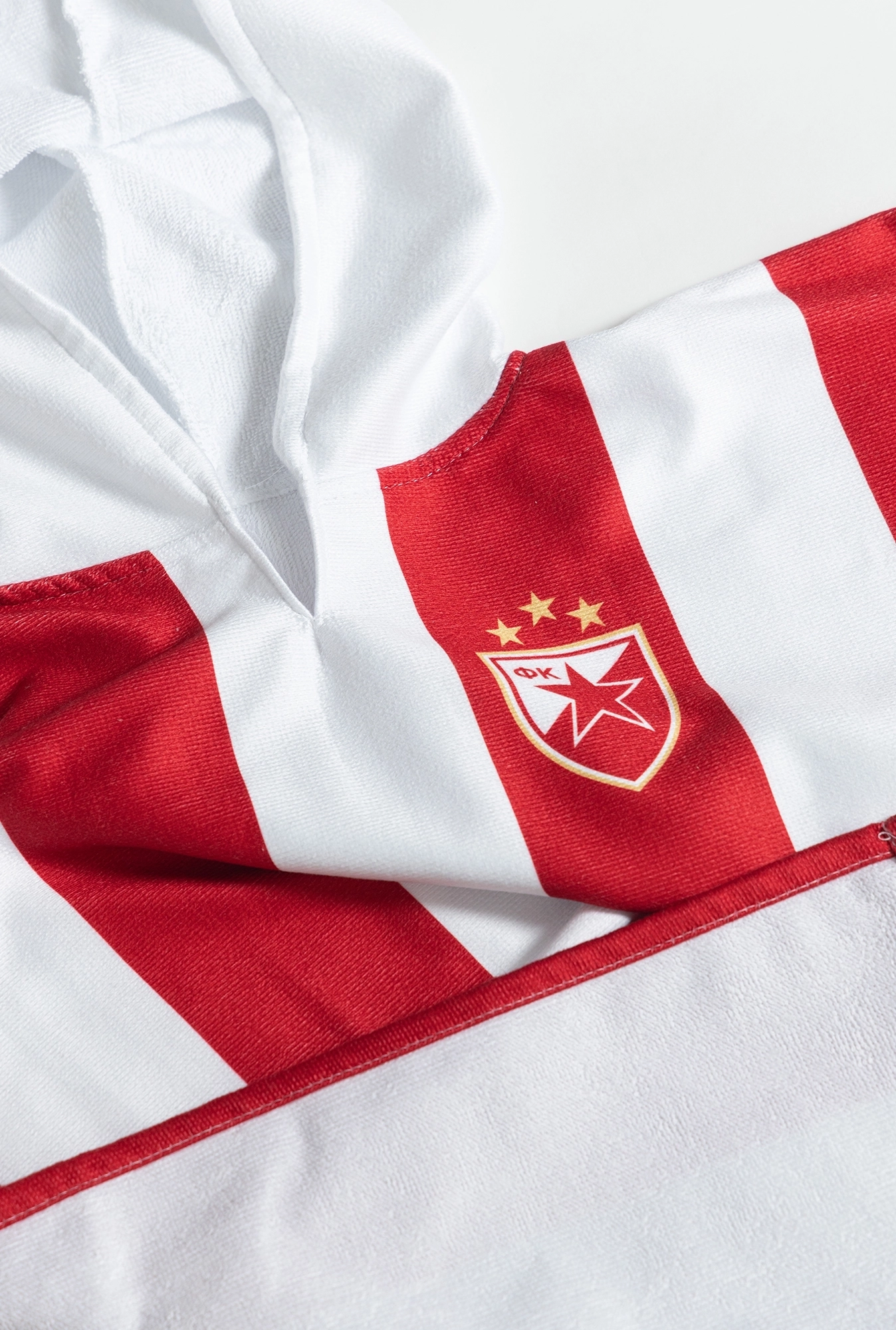 Dečiji pončo FK Crvena Zvezda - lagan, brzo se suši i idealan je za plažu ili bazen za male navijače.