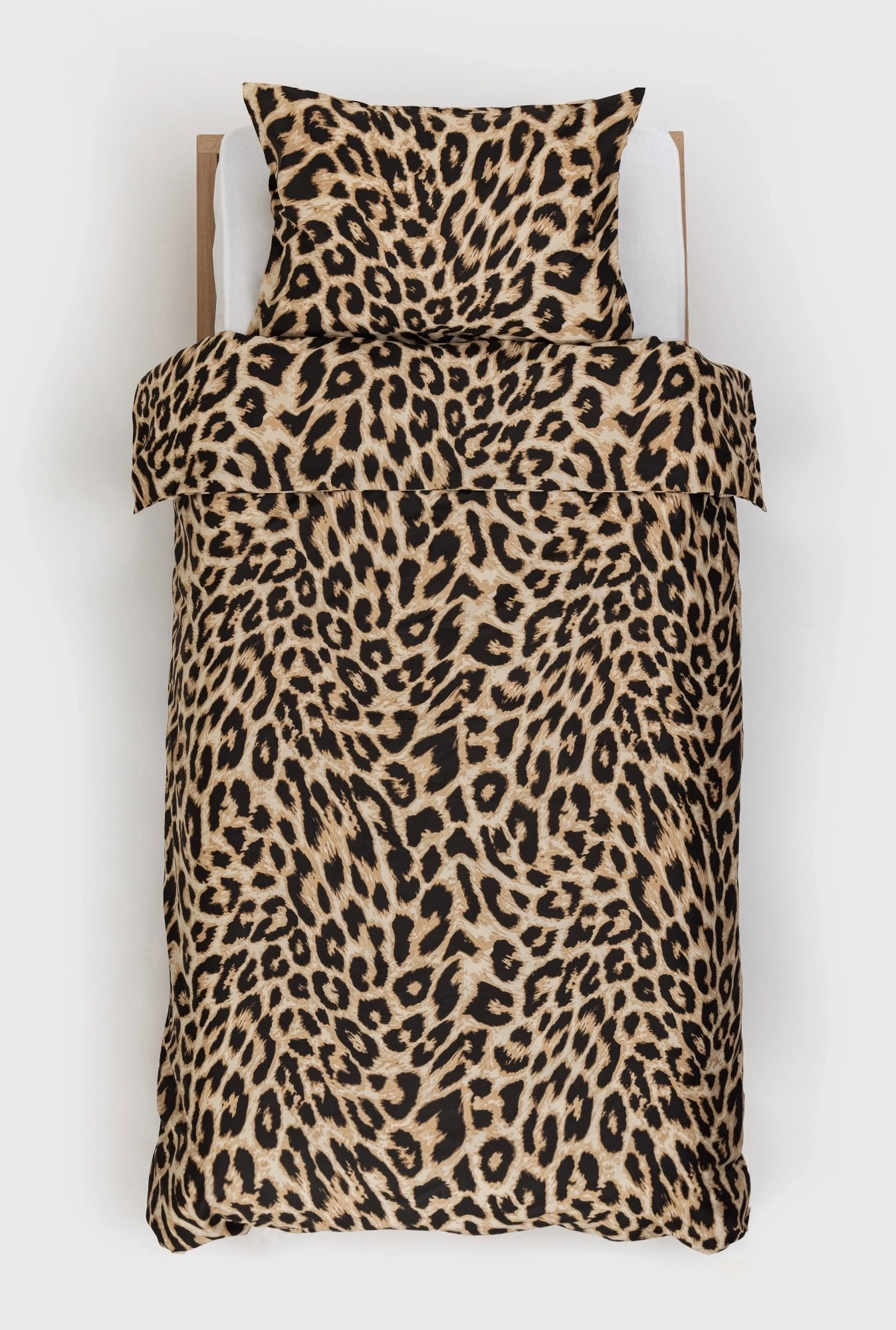 Posteljina Divlja nota od 100% pamuka u setovima za singl i bračne ležajeve. Upečatljiv dezen u bež i crnim tonovima, udobna i laka za održavanje.