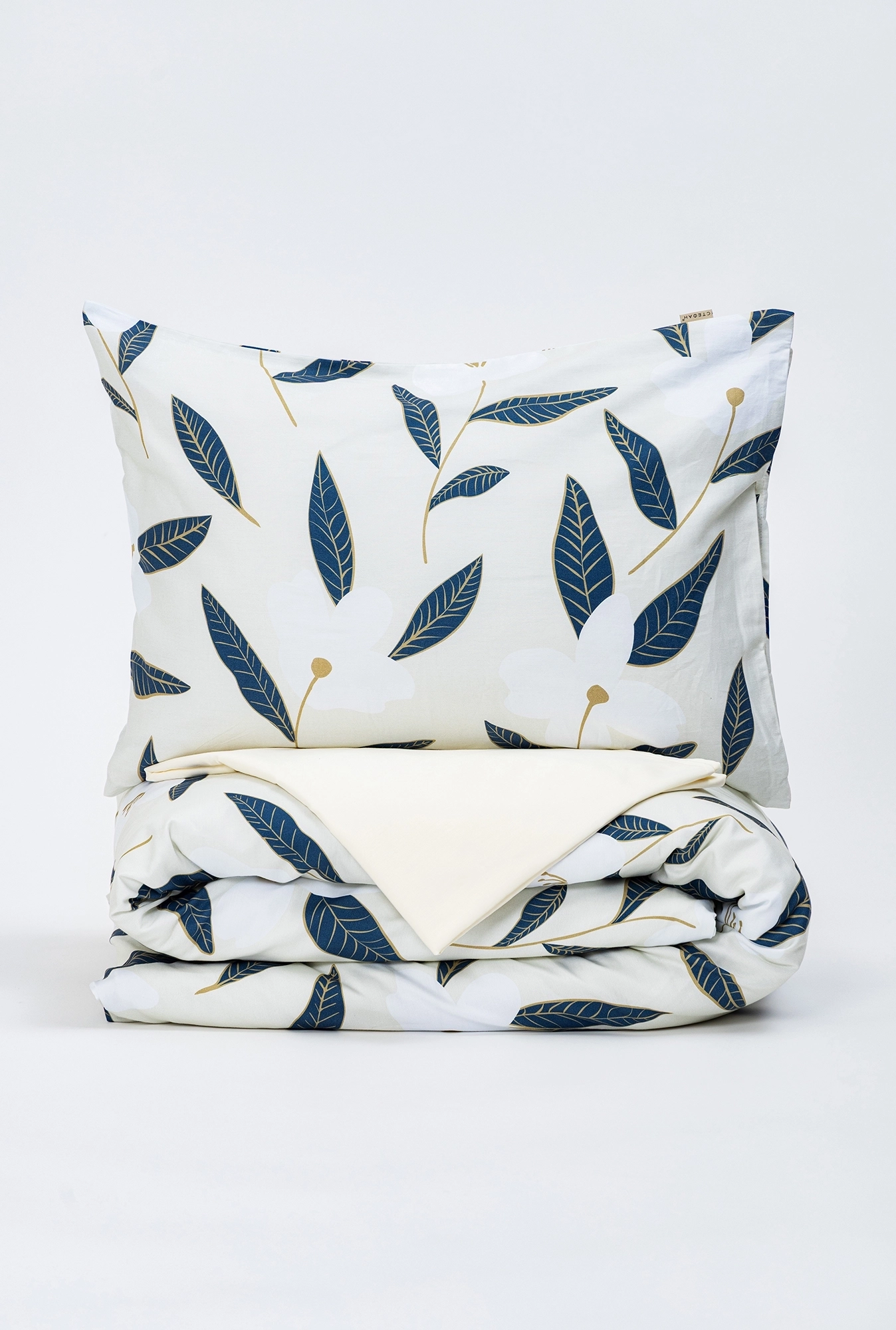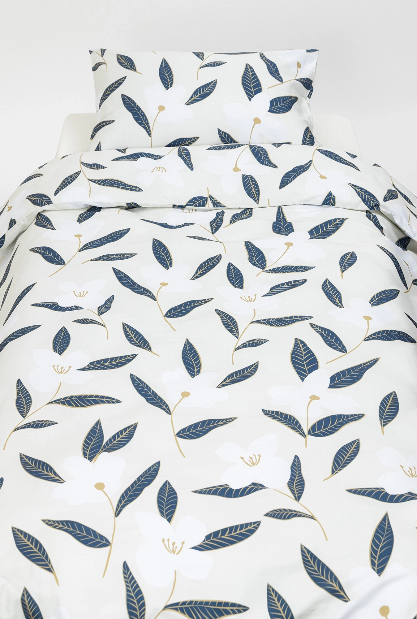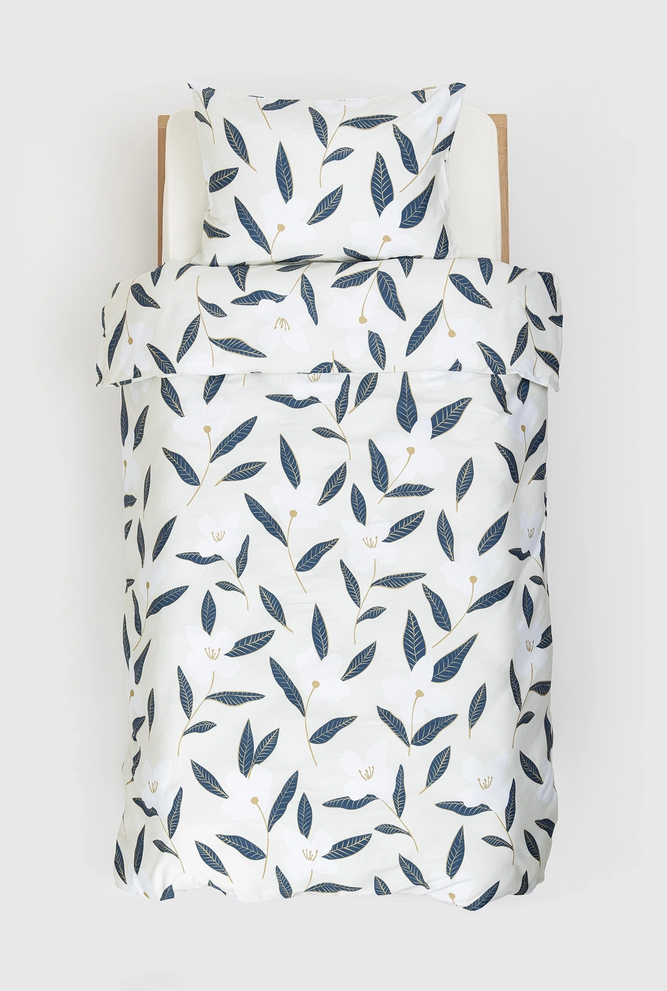 Posteljina od pamučnog satena sa biljnim dezenom u plavim tonovima. Setovi za singl i bračne ležajeve sa uključenim čaršavom. Prirodna, mekana i dugotrajna.