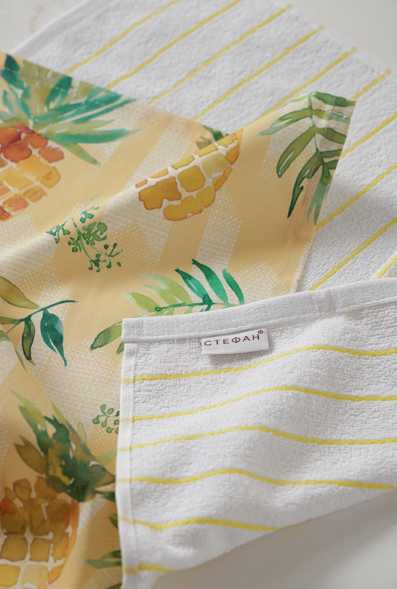 Materijal je upijajući, prijatan za korišćenje i pogodan za svakodnevnu upotrebu. Dezena sa motivom ananasa unosi svežinu i razigran izgled u kuhinjski prostor.