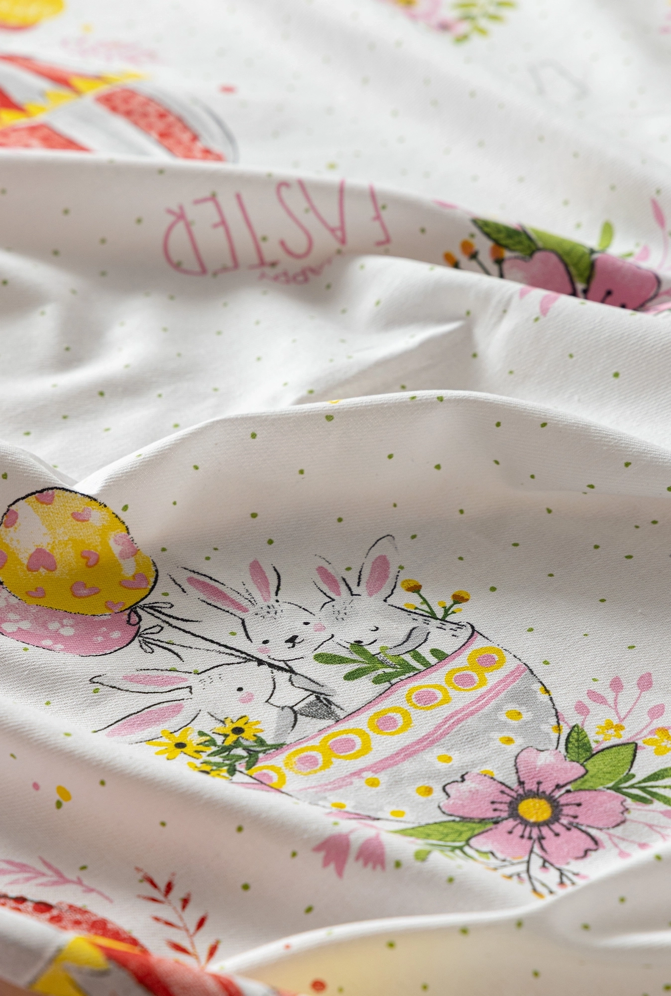 Uskršnji stolnjak od 100% pamuka u dimenzijama 140x140 i 140x180. Dekorativni praznični motivi idealni za svečanu trpezu i porodična okupljanja.
